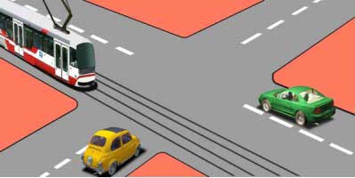 Տրամվայը, դեղին ավտոմոբիլը, կանաչ ավտոմոբիլը: